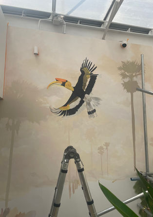 The mural brings warmth, depth, and life into the space—turning what was once a dazzlingly empty passage into a lush, immersive journey through Cambodia’s natural beauty.